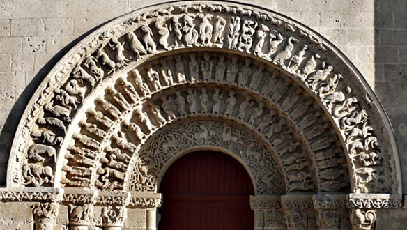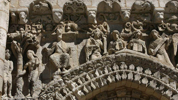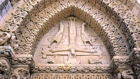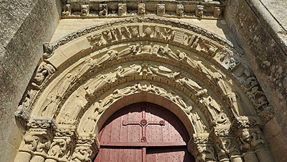 L'église Saint-Pierre d'Aulnay, en Charente-Maritime, construite au début du 12e siècle, fait partie, avec l'église Notre-Dame la Grande de Poitiers et la cathédrale d'Angoulême, des édifices de Poitou-Charentes où la sculpture romane est la plus aboutie.