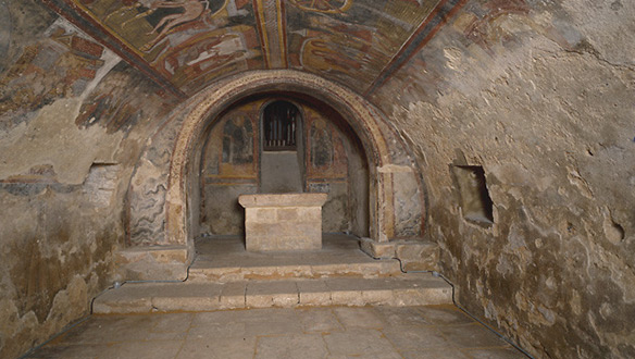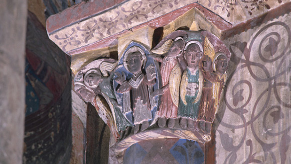 Le principal décor de l'église du 11e siècle, celui qui porte le message religieux, est alors peint. Réalisé dans la seconde moitié du siècle, il subsiste dans la crypte et sur la voûte du chœur, où sont représentés la Vierge à l'Enfant, le Christ en majesté, l'Agneau, ainsi que les apôtres. Les peintures actuelles de la nef datent quant à elles du 19e siècle.